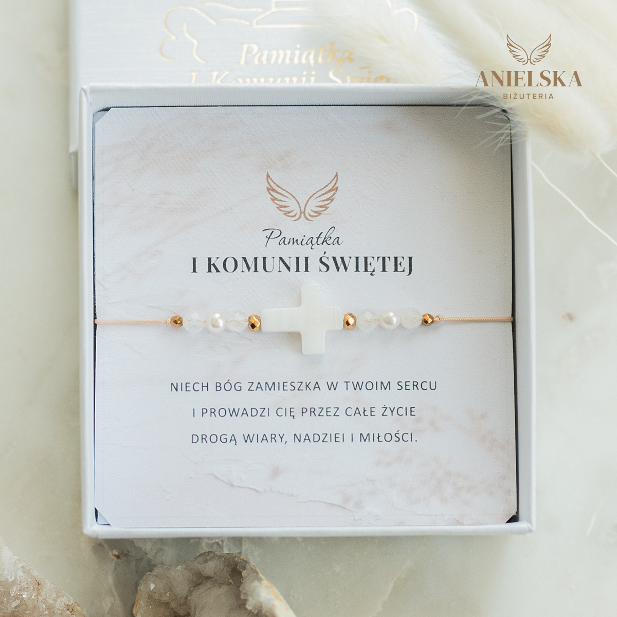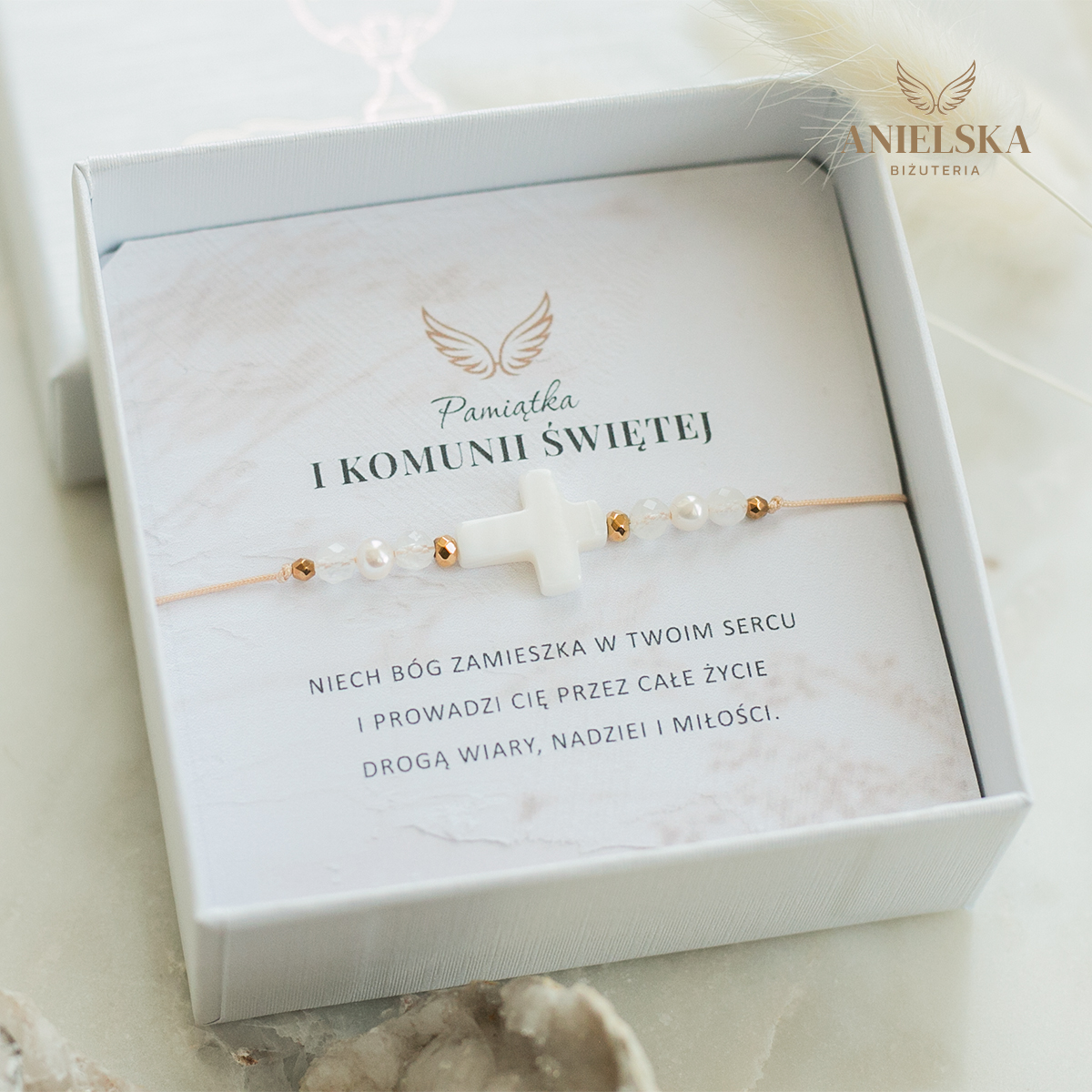 Subtelna i pełna znaczenia – ta bransoletka to nie tylko piękna pamiątka, ale też symbol wiary i opieki Bożej. Bransoletka będzie codziennym przypomnieniem o tym wyjątkowym dniu. Idealny upominek, który ucieszy i wzruszy w tak ważnym momencie życia.